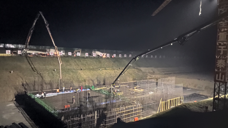 10月3日清晨,歷經(jīng)12小時緊張而有序的施工,隨著最后一方混凝土的注入,靈璧船閘項目首段(5號)閘室底板砼澆筑順利完成,標(biāo)志著船閘主體工程進入規(guī)?;┕?。