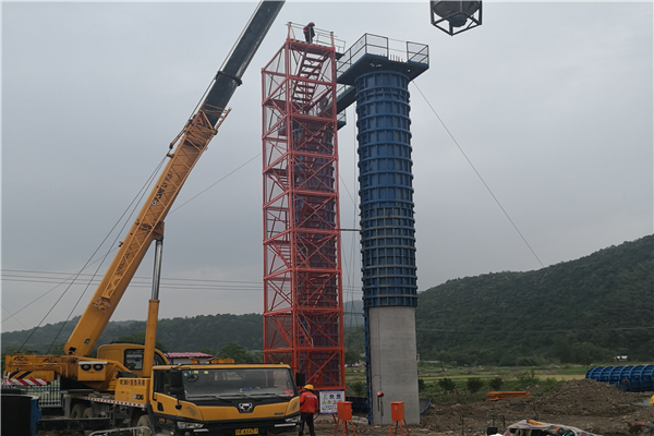 蕪黃高速屬于山嶺重丘區(qū)高速公路,地勢(shì)條件復(fù)雜,施工難度大。本合同段大橋3座共計(jì)2164米,其中麻川河大橋總長(zhǎng)962米,共108根墩柱,且墩柱大部分為高墩柱施工。施工前,項(xiàng)目組織工程技術(shù)人員、試驗(yàn)人員等進(jìn)行了試驗(yàn)墩澆筑,從施工實(shí)踐中為后續(xù)大規(guī)模的橋梁墩柱施工尋找指導(dǎo)參數(shù)及施工經(jīng)驗(yàn)。本次施工的墩柱單根長(zhǎng)17.7米,混凝土分兩次澆筑,共計(jì)方量90方。