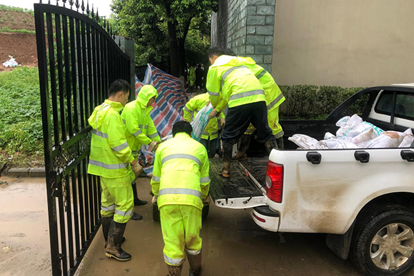 接蜀山區(qū)管委會(huì)通知,市政分公司立即調(diào)配運(yùn)輸車輛和防汛物質(zhì),組織30多名青年突擊隊(duì)員勇敢投入到“保衛(wèi)潛山路泵站”的戰(zhàn)斗中,為潛山路泵站筑起了一道牢牢的堤壩,它既是阻擋內(nèi)澇沖擊的防水墻,也是群眾心中的安全之壩。經(jīng)過(guò)近8個(gè)小時(shí)的不懈戰(zhàn)斗,泵站險(xiǎn)情排除、正常運(yùn)轉(zhuǎn)。