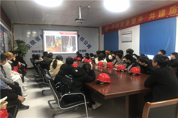 12月1日,安徽交通職業(yè)技術(shù)學(xué)院組織40余名學(xué)生到第一分公司銅陵市G236青通河大橋改建工程項目部參觀學(xué)習(xí)。項目辦主任燕飛、中心試驗室主任董守兵參加。