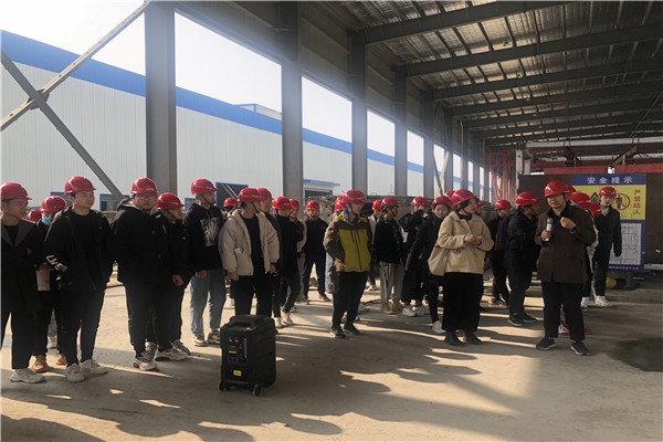 交院師生首先聽取了項目總工對公司及項目情況、施工工藝技術(shù)、施工流程情況介紹,同時觀看了項目實時航拍視頻。隨后,在項目負(fù)責(zé)人的帶領(lǐng)下,有序進(jìn)入施工現(xiàn)場參觀了項目鋼筋加工場、拌合站及梁板預(yù)制場,并觀看了T梁預(yù)應(yīng)力張拉施工工藝。