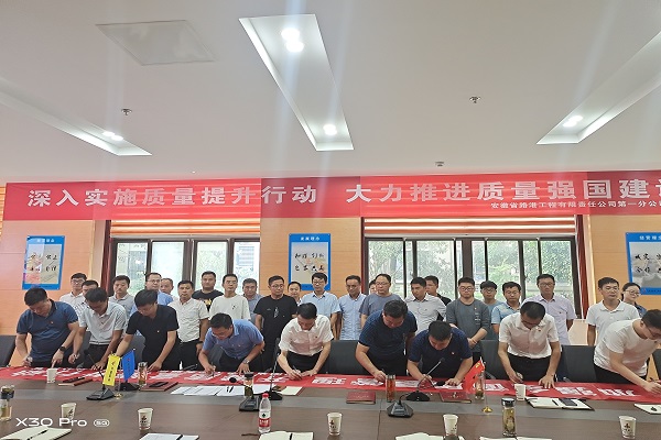 會上,分公司及所屬項目部學(xué)習(xí)集團(tuán)公司相關(guān)文件精神,觀看質(zhì)量月宣傳教育視頻,圍繞“深入實施質(zhì)量提升行動、大力推進(jìn)質(zhì)量強(qiáng)國建設(shè)”質(zhì)量月主題,舉行簽字儀式。會議旨在進(jìn)一步強(qiáng)化全體員工質(zhì)量意識和責(zé)任意識,促進(jìn)分公司質(zhì)量管理體系高效運行。
