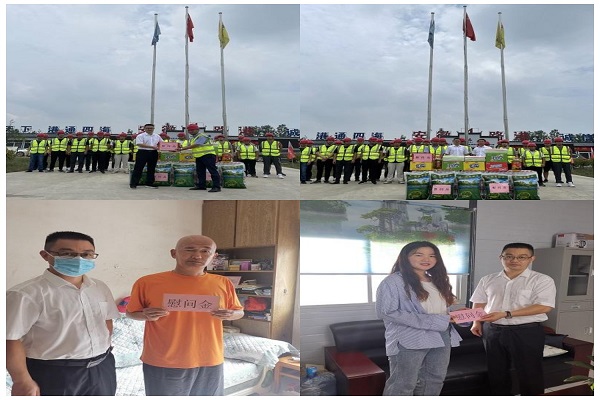 公司黨委委員、紀(jì)委書記張?chǎng)胃昂现芨咚賶蹪}段路基03標(biāo)送清涼并慰問(wèn)困難職工