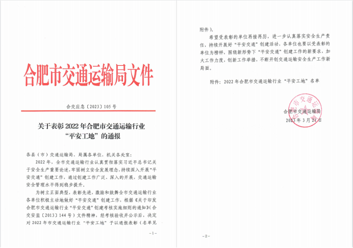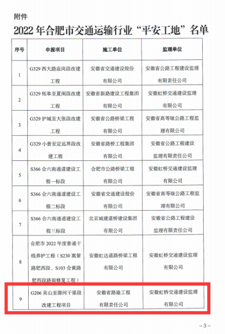 近日,在合肥市交通運輸局開展的建設(shè)系統(tǒng)第一批“平安交通”創(chuàng)建工作中,市政分公司承建的G206公路吳山至滁河干渠段改建工程項目榜上有名。