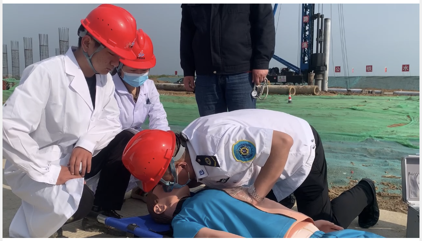此次演練成立了以項目辦主任尹飛任總指揮的汛期應(yīng)急救援指揮部,指揮部下設(shè)搶險救援組、安全保衛(wèi)組、后勤保障組、醫(yī)療救護組、通訊聯(lián)絡(luò)組、事故調(diào)查組等機構(gòu)。演練模擬在極端天氣下,安全員在施工現(xiàn)場巡視發(fā)現(xiàn)險情立即上報指揮部,項目部第一時間組織人員、材料、機械設(shè)備撤離、組織救援等場景。
