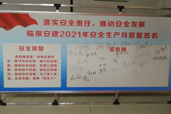 會(huì)議宣貫了集團(tuán)公司“安全生產(chǎn)月”活動(dòng)文件,觀看了《習(xí)近平總書記關(guān)于安全生產(chǎn)重要論述-生命重于泰山》專題視頻,通報(bào)了安徽省近期安全生產(chǎn)事故,對(duì)安全工作做出部署。會(huì)議強(qiáng)調(diào):一是重視危險(xiǎn)源排查,降低安全風(fēng)險(xiǎn);二是加強(qiáng)特種設(shè)備拆除過程安全管理;三是加強(qiáng)高溫天氣和汛期安全管理,合理安排作息時(shí)間,根據(jù)現(xiàn)場實(shí)際情況制定防汛應(yīng)急預(yù)案,配足應(yīng)急物資;四是針對(duì)夏季雷電大風(fēng)天氣,做好高大設(shè)備、設(shè)施防雷措施;五是對(duì)取土坑、深基坑進(jìn)行排查,及時(shí)修復(fù)圍擋,并對(duì)周邊村莊、學(xué)校下發(fā)防溺水宣傳單,杜絕溺水事件;六是圍繞“落實(shí)安全責(zé)任、推動(dòng)安全發(fā)展”活動(dòng)主題,落實(shí)安全工作“一崗雙責(zé)”。最后,與會(huì)人員進(jìn)行“安全生產(chǎn)月”落實(shí)安全責(zé)任宣誓、簽名活動(dòng)。