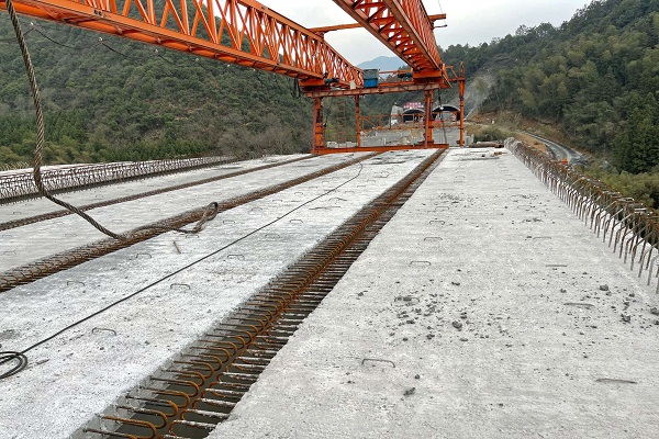 施工過(guò)程中,全體參建員工以時(shí)不我待、只爭(zhēng)朝夕的氣魄全心投入,促進(jìn)施工生產(chǎn)全面推進(jìn),工地上捷報(bào)頻傳,一個(gè)個(gè)節(jié)點(diǎn)目標(biāo)時(shí)到工完。截至目前,石壁山雙聯(lián)拱隧道、譚家橋隧道已貫通,全線橋梁下部結(jié)構(gòu)施工已完成,服務(wù)區(qū)房建已經(jīng)封頂,目前正在全面開展梁板架設(shè)和橋面系施工。