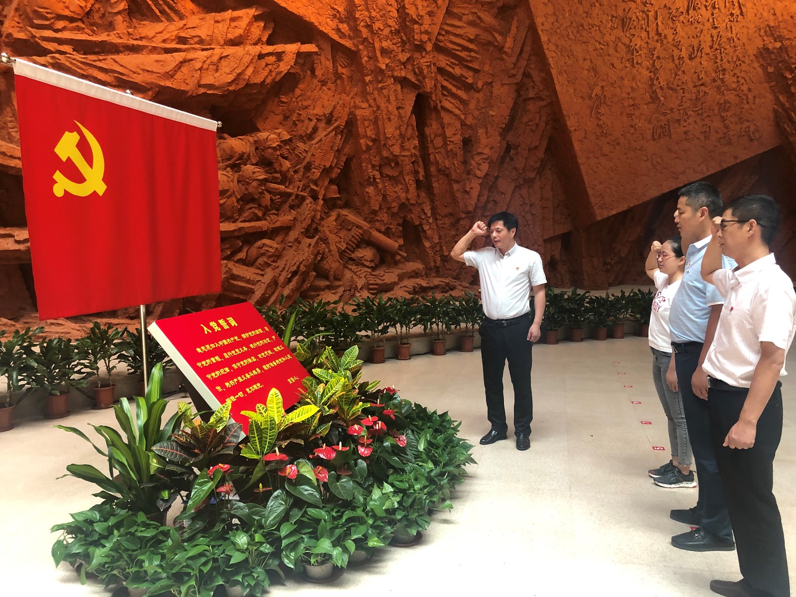 紀念館內,大家依次參觀了各展廳,認真聆聽現(xiàn)場講解,仔細觀看實物及影像資料,接受了一次深刻革命傳統(tǒng)教育。隨后,在紀念館一樓大廳,面對鮮紅的黨旗,支部副書記許玉勇帶領黨員同志重溫入黨誓詞,號召全體黨員要以此次主題教育活動為契機,繼承和發(fā)揚革命先烈矢志不渝的理想信念和堅定執(zhí)著的忠誠品格,充分發(fā)揮共產黨員先鋒模范作用,不忘初心,牢記使命,立足崗位,建功立業(yè)。