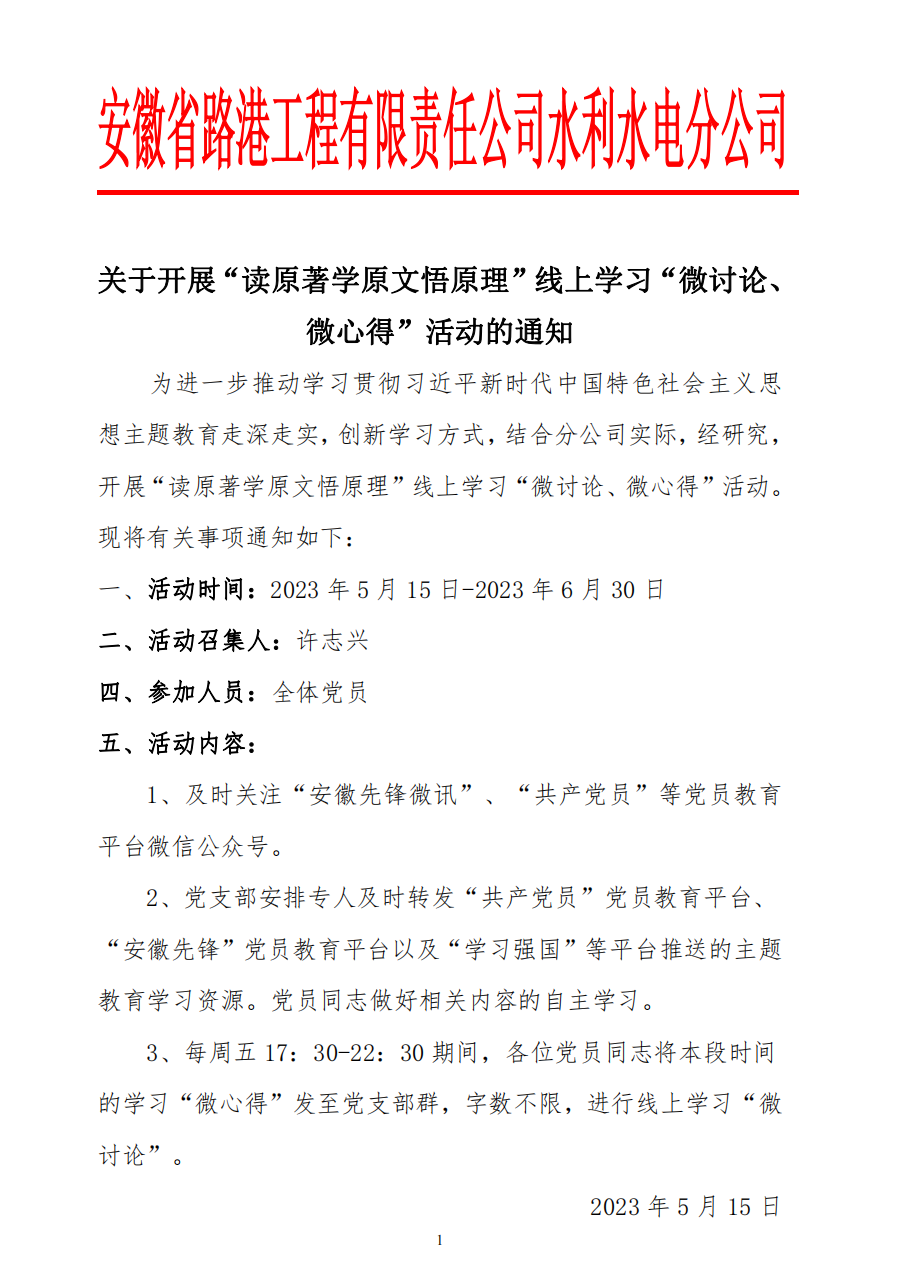 近日,水利水電分公司黨支部組織開展“讀原著學(xué)原文悟原理”線上學(xué)習(xí)“微心得”活動,全體黨員參加活動。