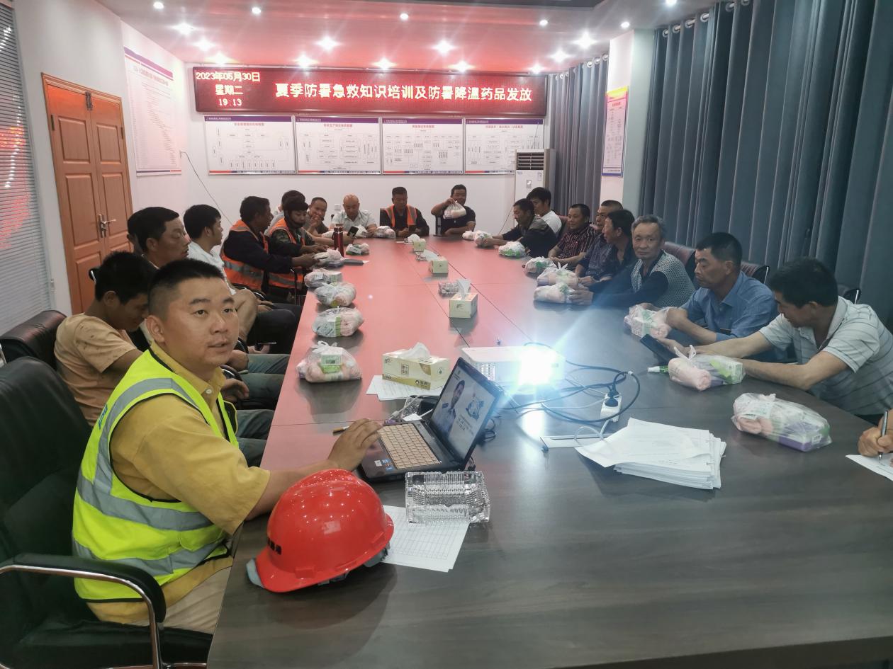迎來第22個全國“安全生產(chǎn)月”的同時,也步入了夏季施工階段,為做好夏季施工安全管理,落實項目主體責(zé)任,項目部開展夏季防暑急救知識培訓(xùn)及防暑降溫藥品發(fā)放活動,將藿香正氣水、仁丹、風(fēng)油精、花露水、毛巾及香皂等防暑物資發(fā)放到一線工人手中,并告知施工人員高溫季節(jié)施工作業(yè)注意事項、高溫中暑癥狀與緊急處理措施,囑咐大家注意勞逸結(jié)合,在確保安全的前提下高質(zhì)量完成工作任務(wù)。