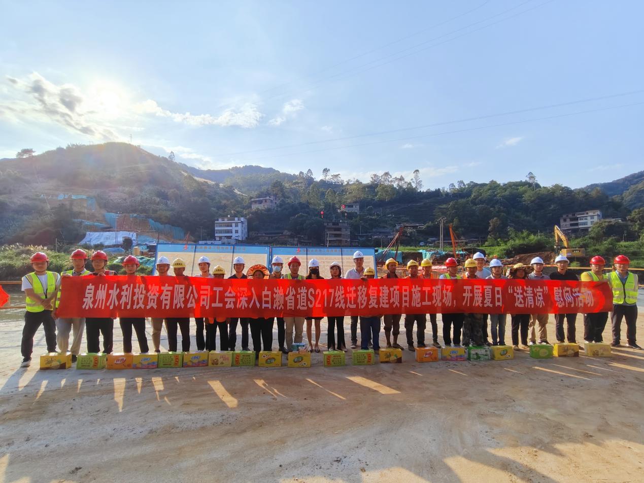 驕陽似火,酷暑難擋。為持續(xù)做好高溫作業(yè)勞動(dòng)保護(hù)工作,保障奮戰(zhàn)在一線工人的健康安全,6月12日,泉州水利投資有限公司副總工程師王兆軍一行深入泉州白瀨A2合同段項(xiàng)目樁基施工現(xiàn)場,開展夏日“送清涼”慰問活動(dòng)。
