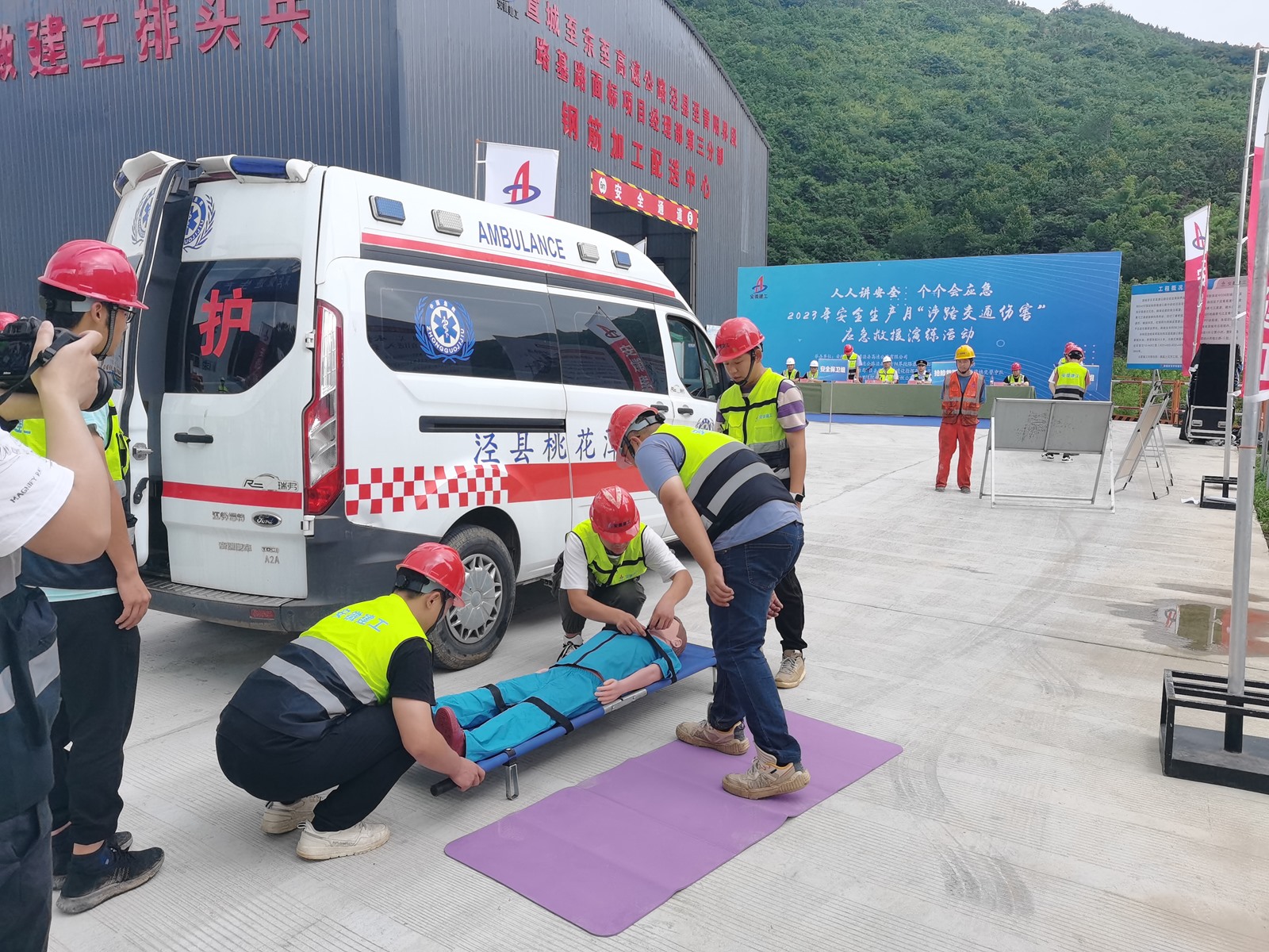 6月19日下午,涇青高速三分部項(xiàng)目圍繞“人人講安全、個個會應(yīng)急”安全生產(chǎn)月活動主題開展交通事故應(yīng)急救援演練。安徽建工集團(tuán)涇縣高速公路有限公司、涇縣交運(yùn)局執(zhí)法大隊(duì)、桃花潭鎮(zhèn)交警中隊(duì)、桃花潭鎮(zhèn)中心衛(wèi)生院、中心試驗(yàn)室、總監(jiān)辦等代表參加演練。