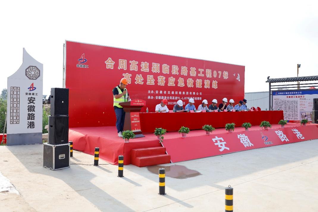 會后,章征組織項目參建各方前往施工現(xiàn)場觀摩項目質(zhì)量、安全環(huán)保工作開展情況,隨后參加了“高處墜落”應(yīng)急救援演練。