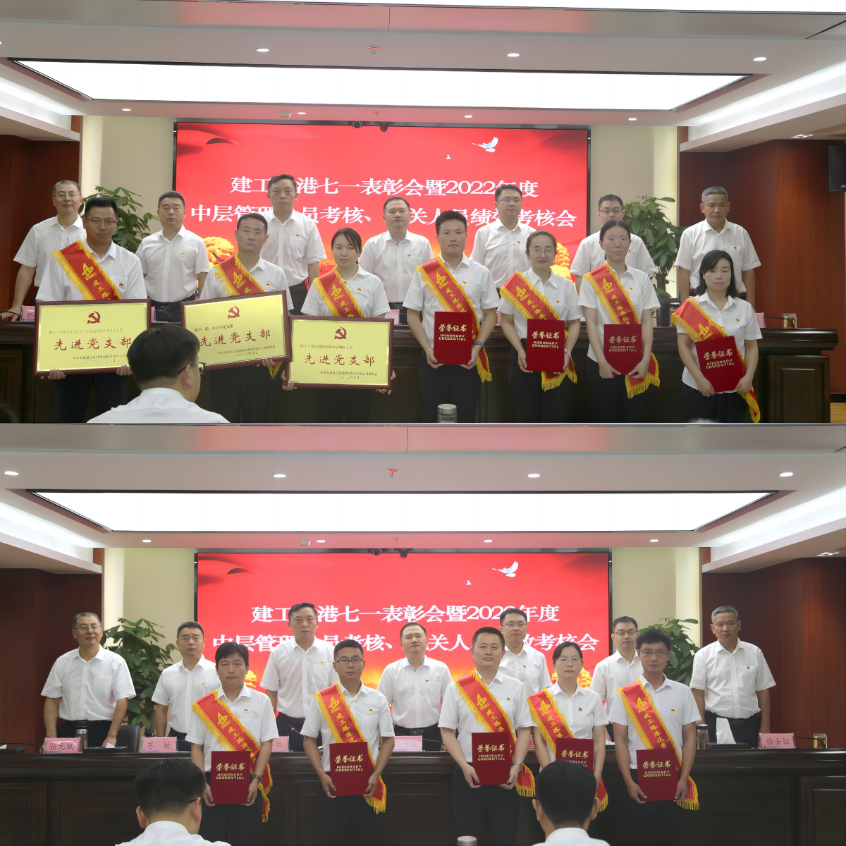 7月1日,建工路港隆重召開七一表彰會暨2022年度中層管理人員考核、機關人員績效考核會,熱烈慶祝黨的生日。公司領導班子全體成員出席會議,公司黨委書記、董事長錢葉琳作講話并上主題教育專題黨課。公司黨委副書記、工會主席仇多維主持會議。