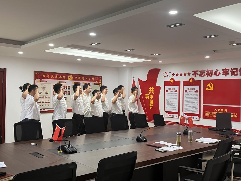 面向鮮紅的黨旗,由支部書記林虎帶領(lǐng)全體黨員鄭重宣誓,鏗鏘有力、擲地有聲的誓詞在耳邊響起,展示了黨員職工的責(zé)任與擔(dān)當(dāng),表達(dá)了對(duì)黨忠誠(chéng)、全心全意服務(wù)群眾的決心和意志。