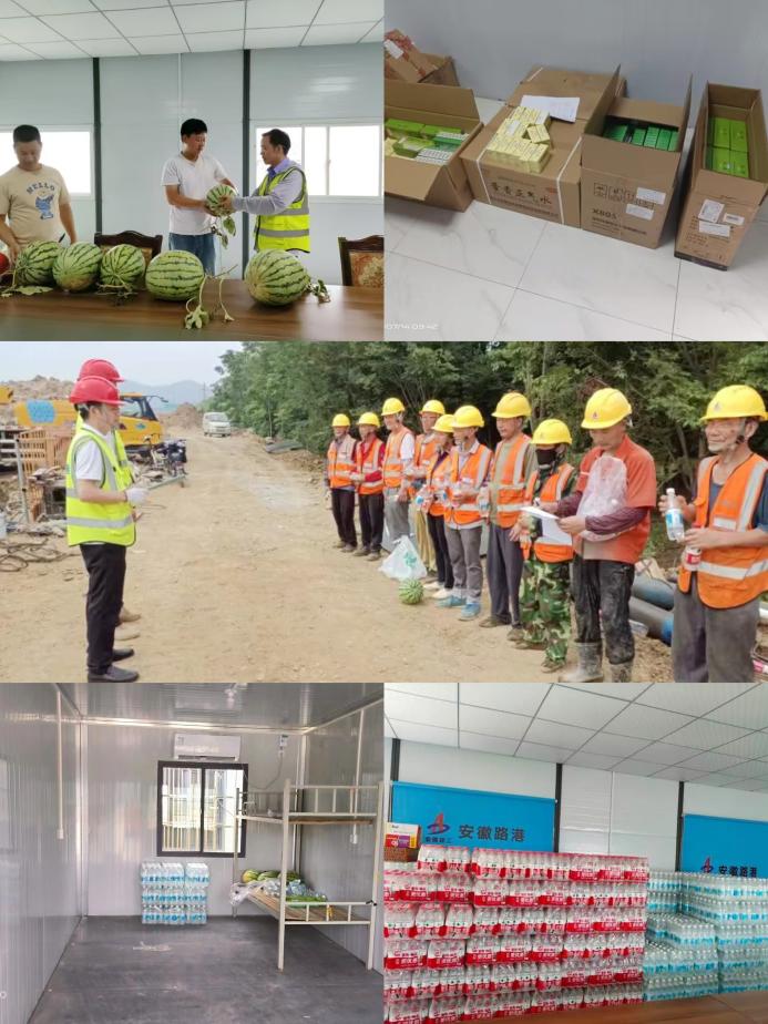 項目部加大教育培訓(xùn)力度,利用班前會普及高溫防護(hù)、中暑急救等職業(yè)衛(wèi)生知識,要求項目技術(shù)員、施工人員和應(yīng)急車配備防暑降溫藥品;調(diào)整施工作業(yè)時間,合理安排好施工作業(yè)面,利用夜間或早晨進(jìn)行施工,避開高溫時段;為工人們準(zhǔn)備防暑降溫用品,在施工現(xiàn)場設(shè)立休憩間并配備空調(diào)、飲用水、西瓜及防暑藥品供工人飲水休息,確保夏季高溫施工平穩(wěn)推進(jìn)。