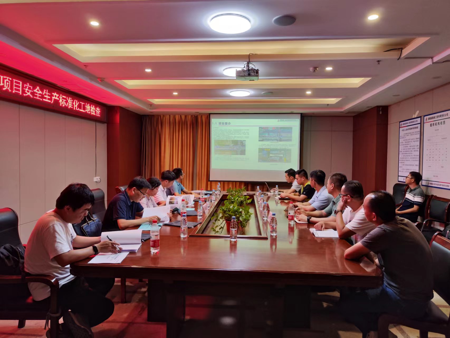 專家組一行深入施工現(xiàn)場,實地查看現(xiàn)場內(nèi)施工圍擋、臨邊防護、機械維保等現(xiàn)場安全生產(chǎn)管控措施,并詢問了解施工過程中的作業(yè)方法、防護手段等;隨后專家組聽取了項目領(lǐng)導(dǎo)關(guān)于安全生產(chǎn)標準化的專題匯報,并對危大工程專項方案以及施工過程中的見證性資料進行了嚴格檢查。專家組成員一致認為合肥市軌道交通7號線項目施工現(xiàn)場文明有序,安全體系機制健全,過程管控資料規(guī)范,對項目部爭創(chuàng)合肥市軌道交通建設(shè)工程安全生產(chǎn)標準化工地表達了肯定!