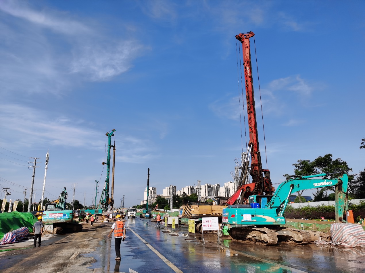 7月以來(lái),金寨南路02標(biāo)項(xiàng)目搶抓施工黃金期,掀起大干熱潮。施工現(xiàn)場(chǎng)各種大型機(jī)械往來(lái)奔波,機(jī)械轟鳴,一派繁忙景象。