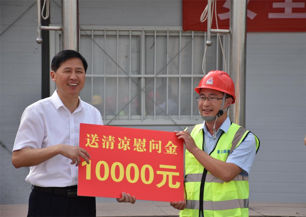 驕陽(yáng)似火,酷暑難擋。為持續(xù)做好高溫作業(yè)勞動(dòng)保護(hù)工作,保障奮戰(zhàn)在一線工人的健康安全,8月7日,馬鞍山市副市長(zhǎng)左年文一行到寧蕪高速改擴(kuò)建項(xiàng)目01標(biāo)開展“送清涼”慰問(wèn)一線施工人員工作。
