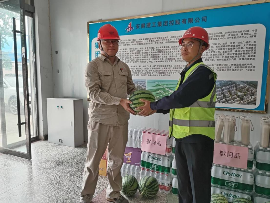 曹偉平對高溫天氣始終堅(jiān)守的項(xiàng)目職工致以誠摯慰問,為大家送上醫(yī)藥用品、清涼飲品和西瓜等防暑降溫物品,并要求相關(guān)負(fù)責(zé)人在保證工作進(jìn)度的同時(shí),合理安排休息時(shí)間,切實(shí)做好高溫天氣環(huán)境下項(xiàng)目職工的安全防護(hù)工作,確保項(xiàng)目職工平安度夏、健康度夏、清涼度夏。