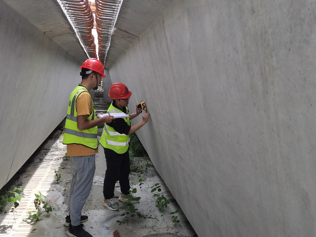 項(xiàng)目橫跨整個(gè)蓄洪區(qū),其中4048m長(zhǎng)的汲河特大橋水下環(huán)境施工對(duì)混凝土性能要求更高。面對(duì)大體積水下混凝土澆筑結(jié)構(gòu)耐久性要求高等挑戰(zhàn),小組成員主動(dòng)擔(dān)當(dāng),反復(fù)比對(duì)標(biāo)準(zhǔn)試件和現(xiàn)場(chǎng)取樣試件,通過調(diào)整粗集料級(jí)配、改良細(xì)集料細(xì)度模數(shù)等措施,不斷提高混凝土的工作性和結(jié)構(gòu)耐久性。