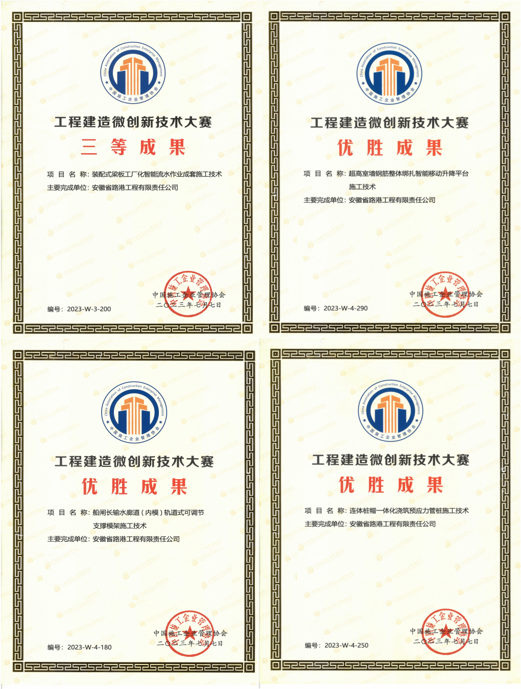 喜訊!建工路港榮獲工程建設(shè)行業(yè)科技創(chuàng)新成果獎項(xiàng)