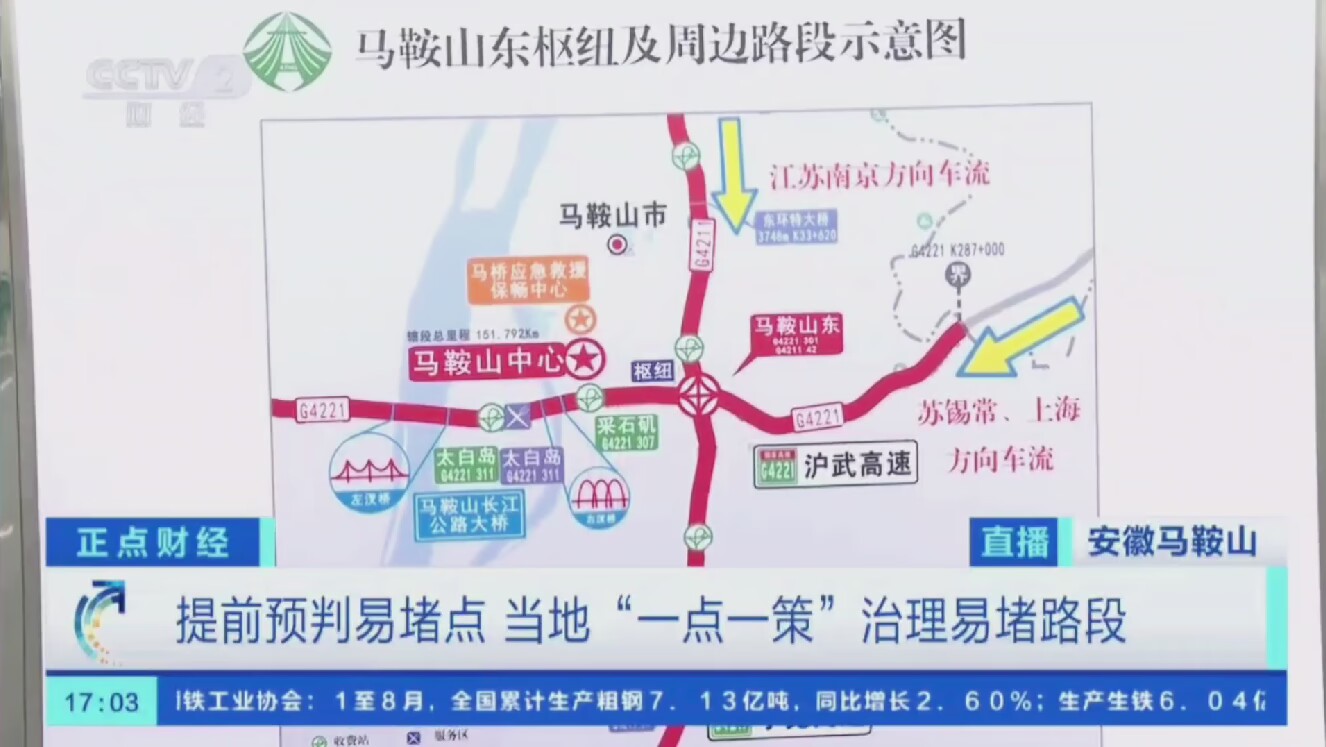 9月28日下午,CCTV2央視財(cái)經(jīng)頻道《正點(diǎn)財(cái)經(jīng)》欄目對寧蕪01標(biāo)項(xiàng)目馬鞍山東樞紐導(dǎo)改通行情況進(jìn)行現(xiàn)場直播報(bào)道。