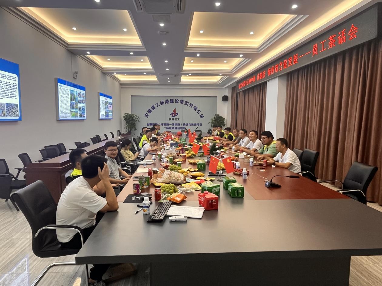 中秋節(jié)前夕,金寨南路2標(biāo)項目在會議室組織開展了“迎中秋慶國慶·暢所欲言促發(fā)展”員工茶話會。