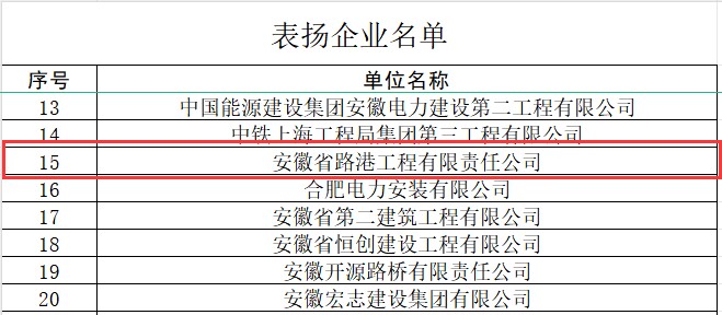 近日,合肥市城鄉(xiāng)建設(shè)局發(fā)布《關(guān)于對(duì)中鐵四局集團(tuán)第一工程有限公司等50家企業(yè)予以表?yè)P(yáng)的通報(bào)》,公司榮獲合肥市城鄉(xiāng)建設(shè)局通報(bào)表彰!