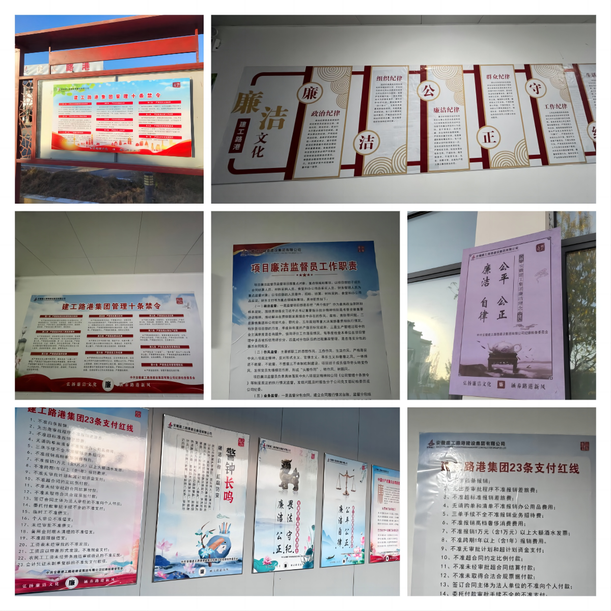 分公司組織所屬各項目部利用黨務(wù)公開欄、廠務(wù)公開欄、辦公室走廊、施工場所張貼廉潔文化宣傳海報,制作了廉政宣傳語、橫幅、展板等,不斷增強廉政教育影響力,提升拒腐防變能力,將“公平公正、廉潔自律”的廉潔文化理念推深走實。