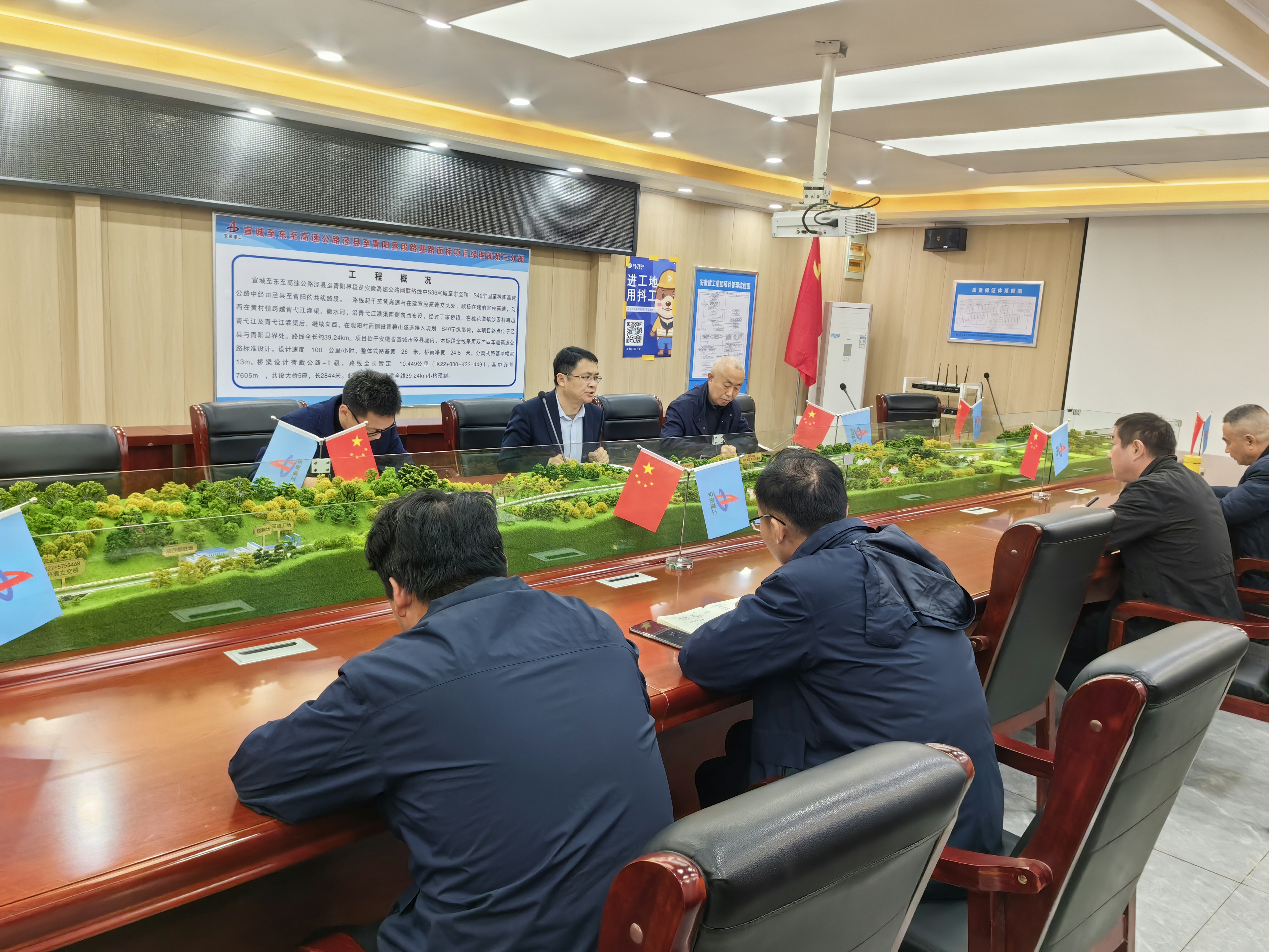 李建成一行前往施工現(xiàn)場聽取項目部工作匯報,并通過會議交流的形式,深入了解項目部當前施工進程及具體實施情況。