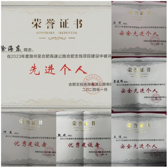 近日,滁合支線項目部喜獲合肥交投合滁高速公路有限公司通報表揚,6名同志榮獲“先進個人”“優(yōu)秀建設(shè)者”“安全先進個人”等榮譽稱號。