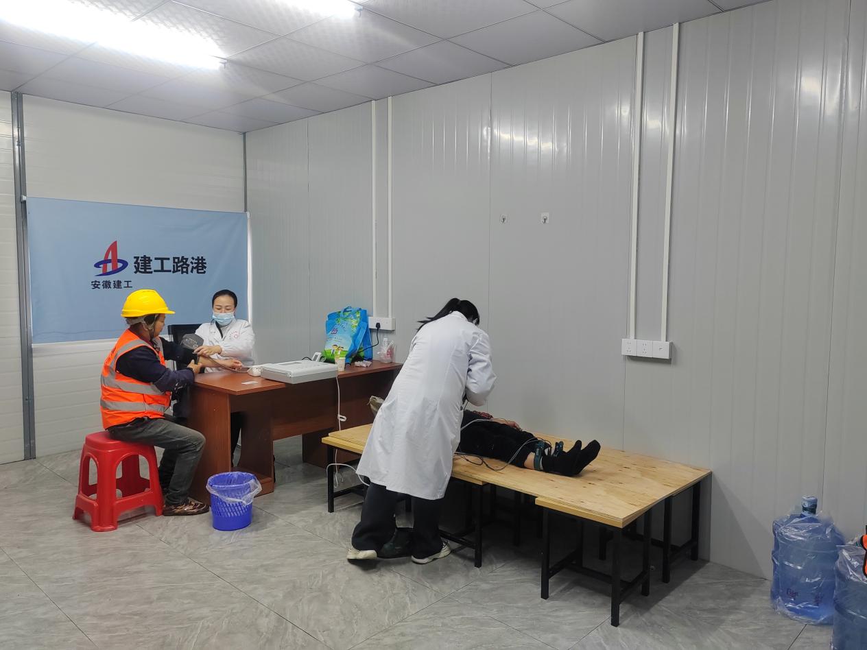 項目部特邀醫(yī)務(wù)人員上門,重點檢查高血壓、心電圖等多項內(nèi)容,同時分批次通知各勞務(wù)班組,確保工人體檢、安全施工兩不誤。醫(yī)務(wù)人員耐心解答工友們咨詢的問題,并向他們普及疾病預(yù)防的相關(guān)知識。