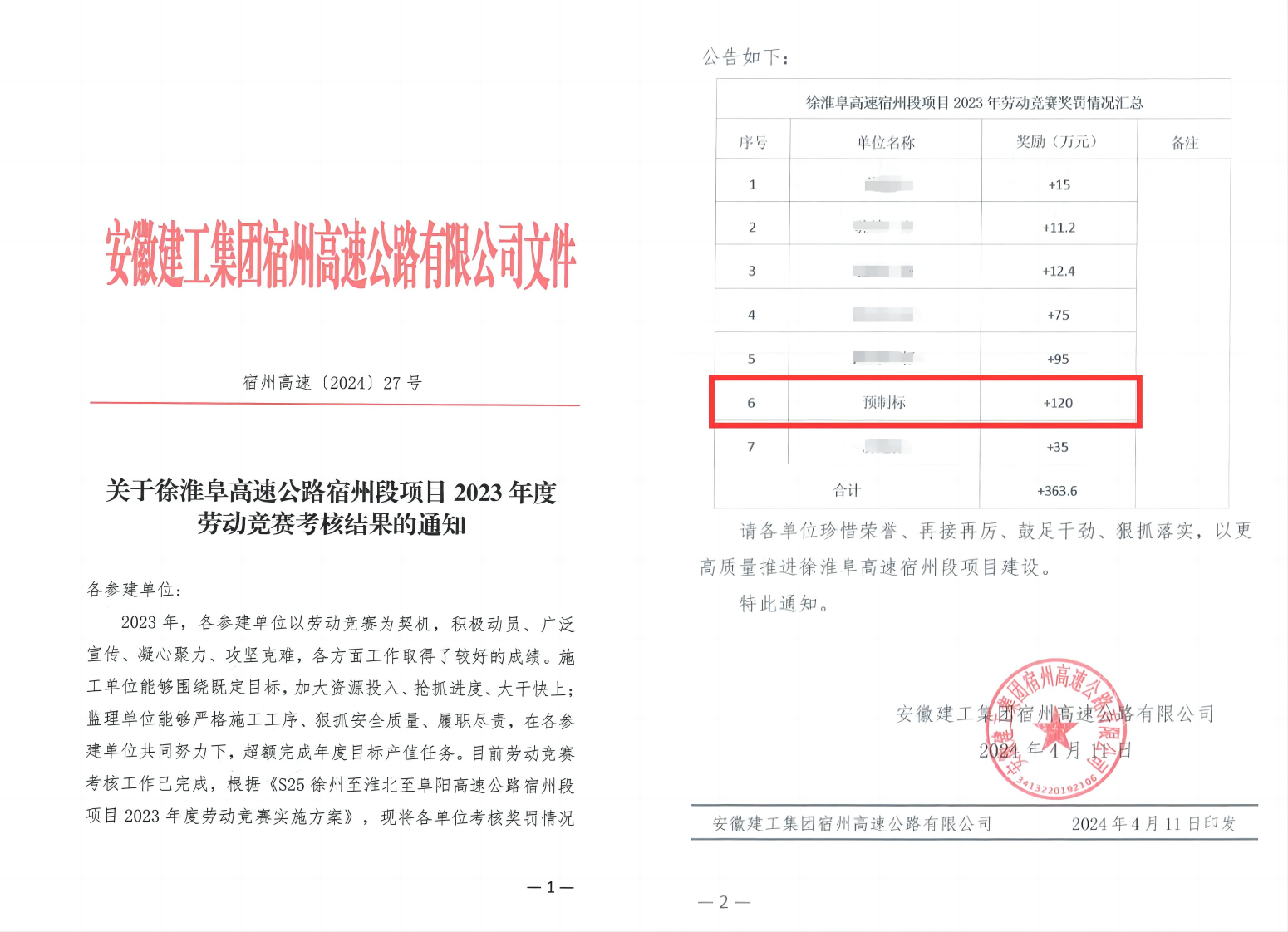 近日,安徽建工集團(tuán)宿州段高速公路有限公司發(fā)來《關(guān)于徐淮阜高速公路宿州段項(xiàng)目2023年度勞動(dòng)競(jìng)賽考核結(jié)果的通知》,建工路港承建的宿州段預(yù)制標(biāo)項(xiàng)目榮獲勞動(dòng)競(jìng)賽第一名并獲得獎(jiǎng)勵(lì)。