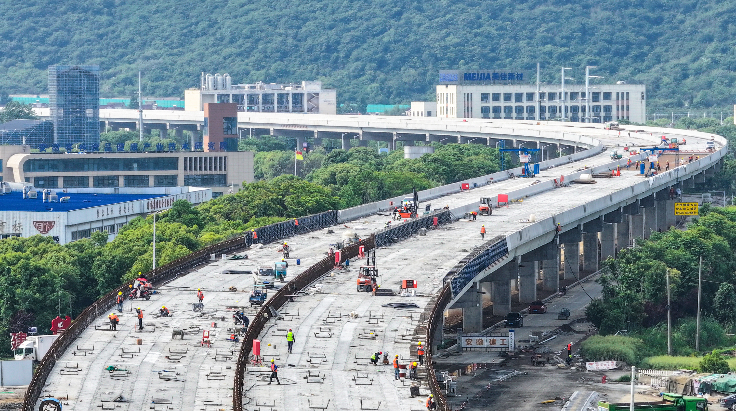 S334項目每天有40多臺施工機械,近400名施工人員在進行上跨橋的橋面鋪裝、防撞護欄施工,路基、路面及附屬設施、交通安全設施、綠化工程等也在同步展開。工程現(xiàn)已完成建安投資額約5.41億元,占總量的82%,力爭確保9月底工程主體完工通車。