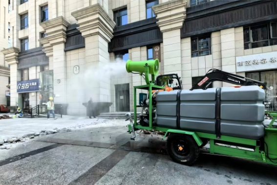 三是配備多名專職保潔人員,保證垃圾及時(shí)清理、場地及時(shí)清洗;多臺(tái)霧炮設(shè)備循環(huán)工作,保持作業(yè)過程濕潤無浮塵;物料集中擺放整齊,裸露土堆覆蓋濾網(wǎng),保持現(xiàn)場布局有序、和諧美觀。