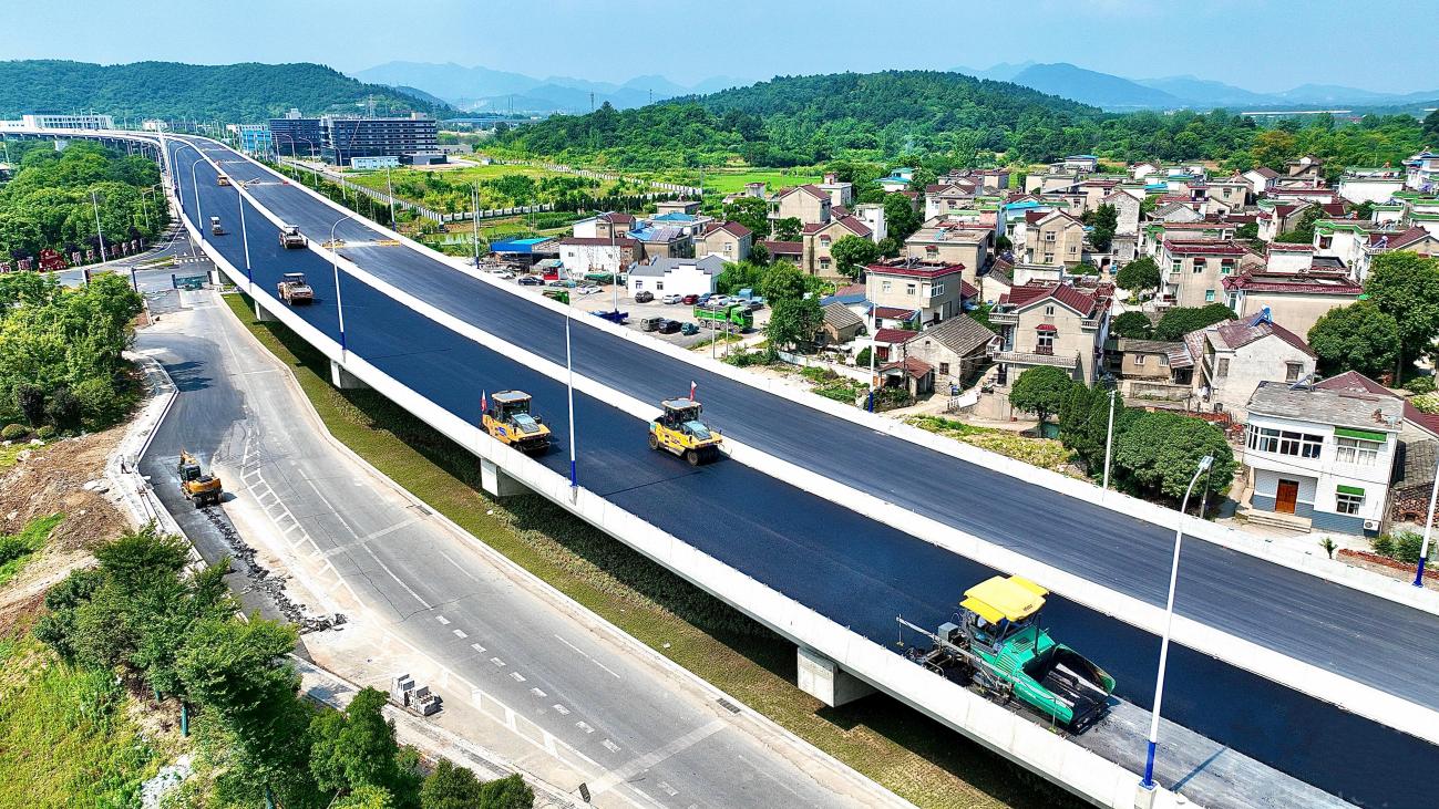 端午節(jié)期間,由建工路港承建的S334(長江南路至繁陽大道段)快速化通道改造工程高架橋瀝青攤鋪現(xiàn)場機(jī)械轟鳴,施工車輛來回穿梭,一片繁忙景象,順利完成了高架橋橋面瀝青混凝土攤鋪。