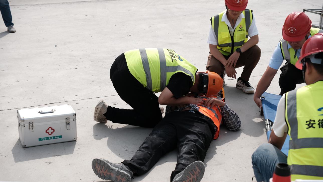 本次演練模擬了施工人員在未穿戴任何防護用品的情況下無證操作私自接線,發(fā)生觸電事故后的急救措施。經(jīng)過事故處理組、警戒聯(lián)絡(luò)組、醫(yī)療救護組、后勤保障組、宣傳報道組的默契配合,演練圓滿成功。