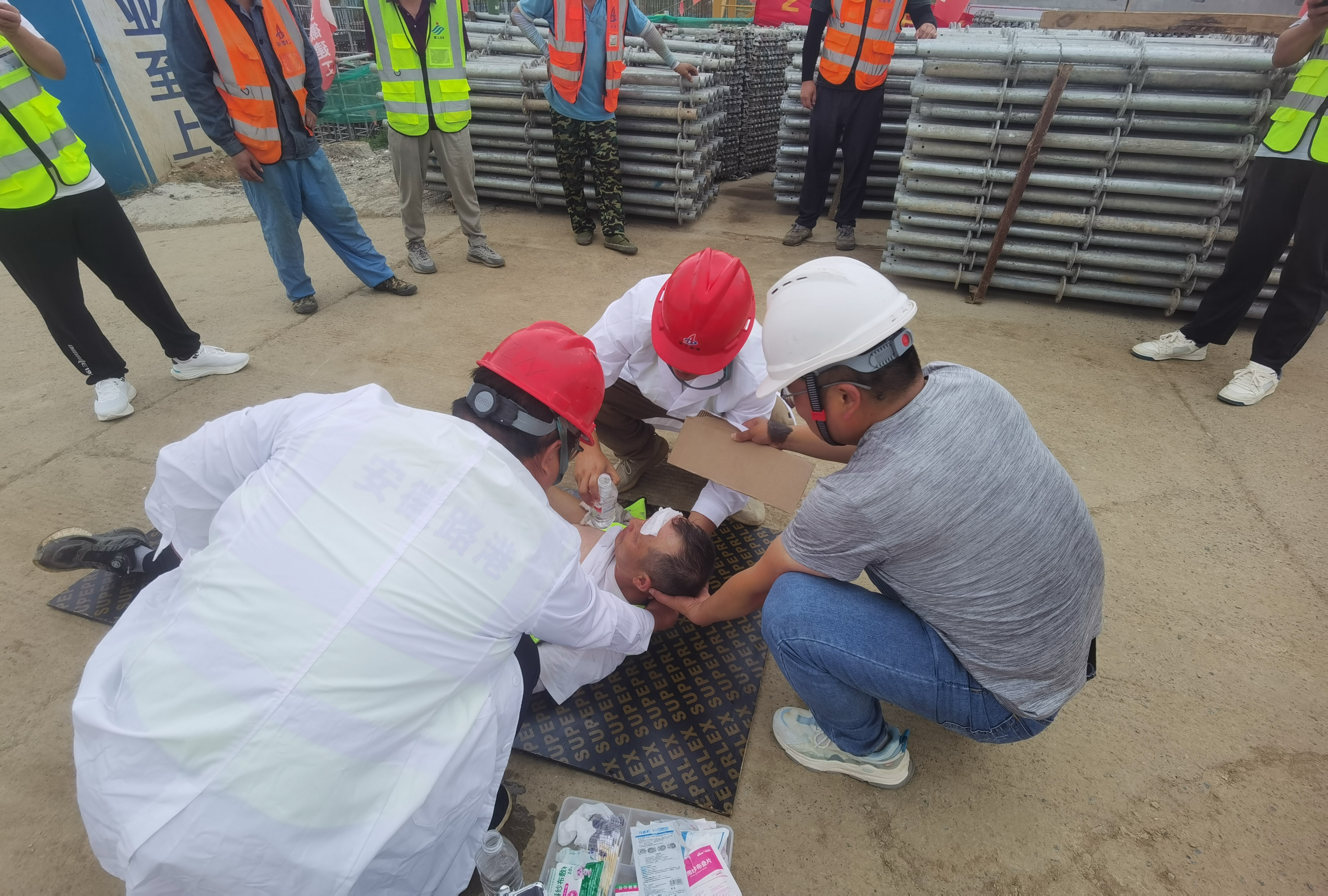 本次演練模擬了高溫環(huán)境下的施工現(xiàn)場(chǎng),工人們身著統(tǒng)一勞保服裝,頭戴安全帽,在高溫作業(yè)時(shí)中暑的緊急情況。事故發(fā)生后,項(xiàng)目部立即啟動(dòng)應(yīng)急預(yù)案,迅速將患者轉(zhuǎn)移到陰涼通風(fēng)處,解開(kāi)衣領(lǐng),扇風(fēng)降溫,并及時(shí)服用防暑降溫藥品,同時(shí),撥打急救電話,將患者送往醫(yī)院接受進(jìn)一步治療。