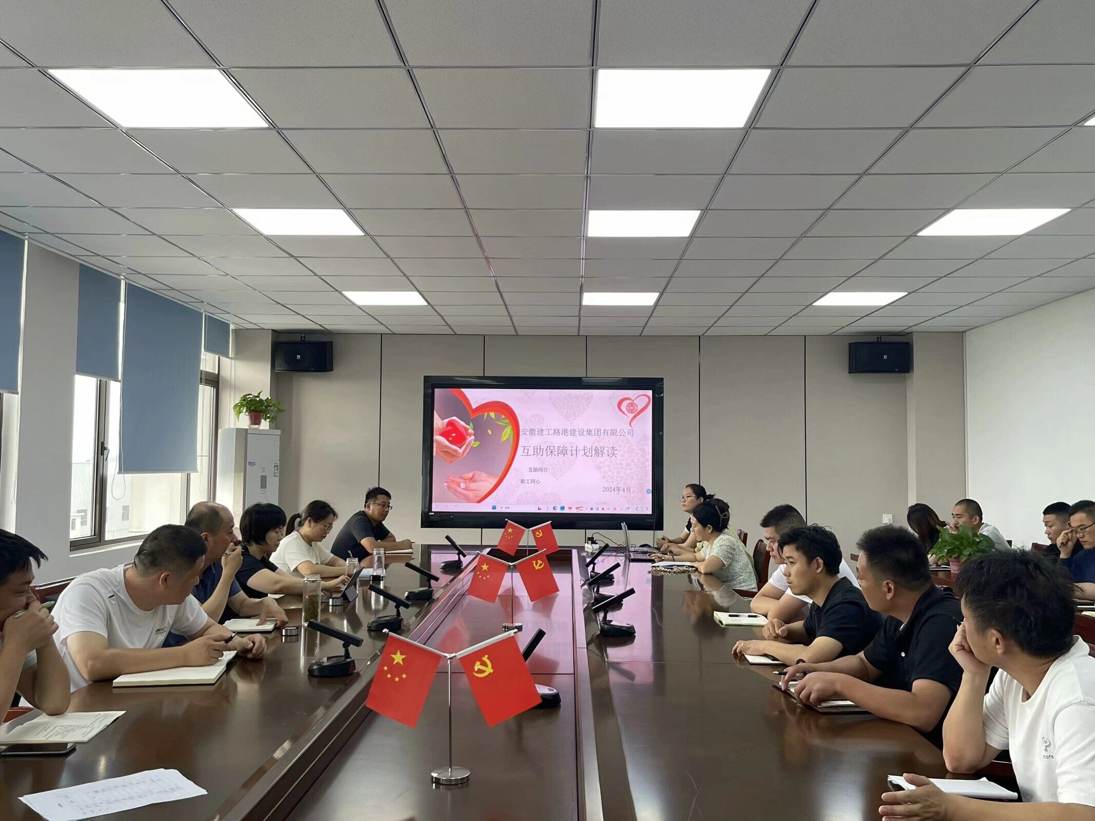 會(huì)議主要學(xué)習(xí)了職工互助保障概念、前期保障險(xiǎn)種介紹、后期兩金申報(bào)介紹,并在申領(lǐng)所需材料及報(bào)險(xiǎn)流程上進(jìn)行詳細(xì)解讀。