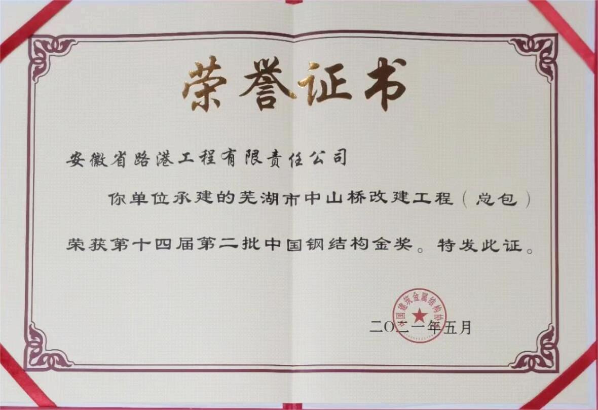 中國鋼結(jié)構(gòu)金獎證書