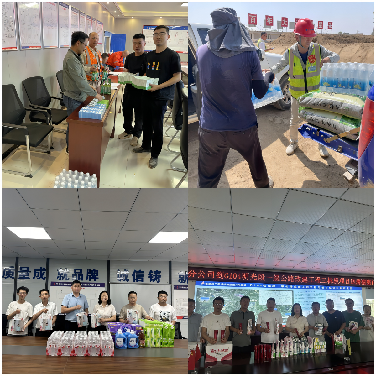 為切實維護(hù)項目職工身心健康,防控高溫中暑等事故發(fā)生,自6月中旬到7月上旬,路橋分公司到各項目開展“情系第一線 防暑保安康”送清涼慰問活動,向一線職工送祝福、送慰問、暖人心、鼓干勁。