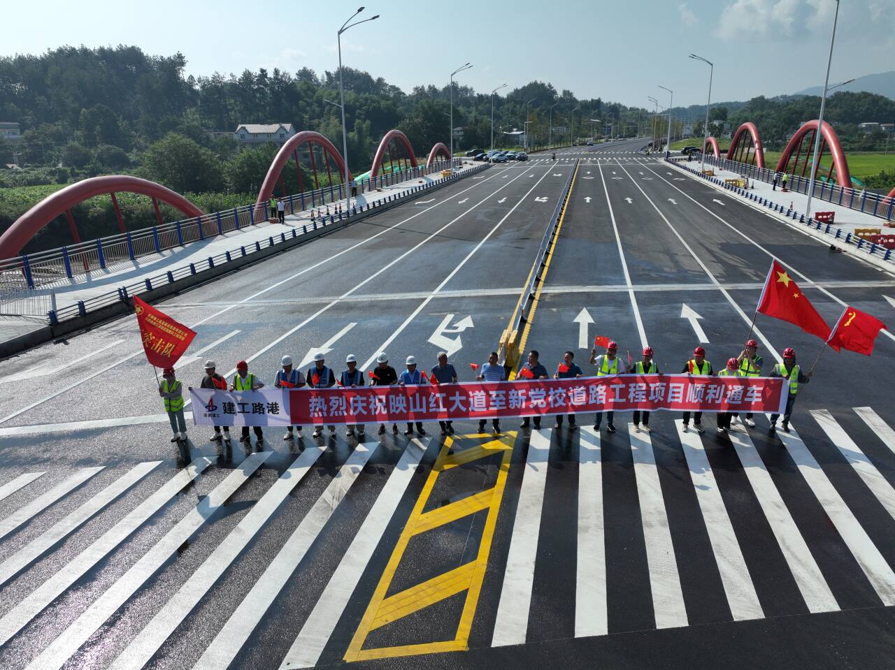 【競速前行 節(jié)點突破】建工路港岳西縣城區(qū)基礎(chǔ)設(shè)施建設(shè)項目映山紅大道立交至新黨校道路正式通車放行