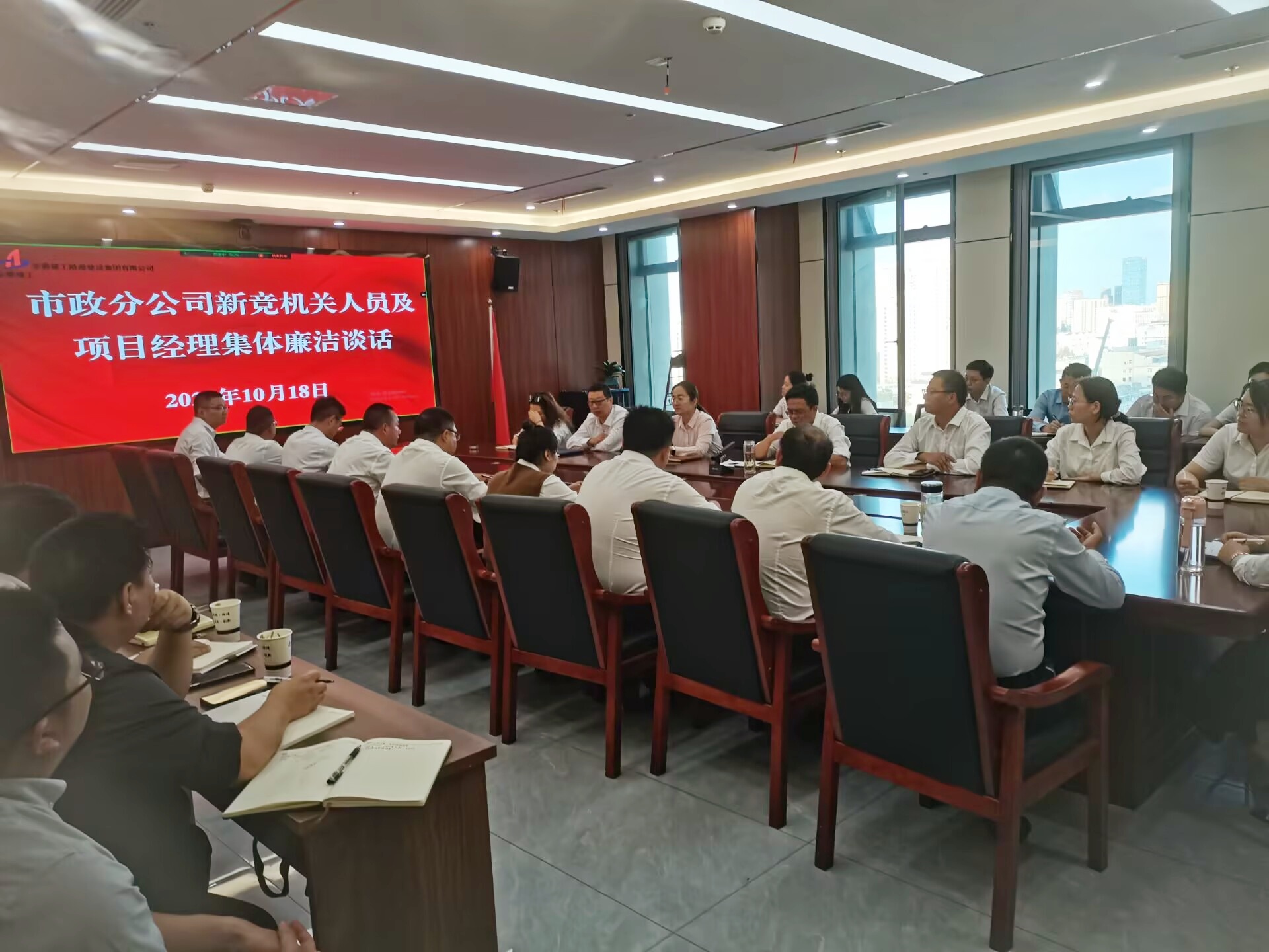 10月18日下午,市政分公司召開新競崗人員和項目經(jīng)理集體廉潔談話,黨支部書記馬莉玲主持會議,分公司領(lǐng)導(dǎo)班子成員、新競崗人員、項目經(jīng)理參加。