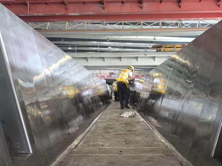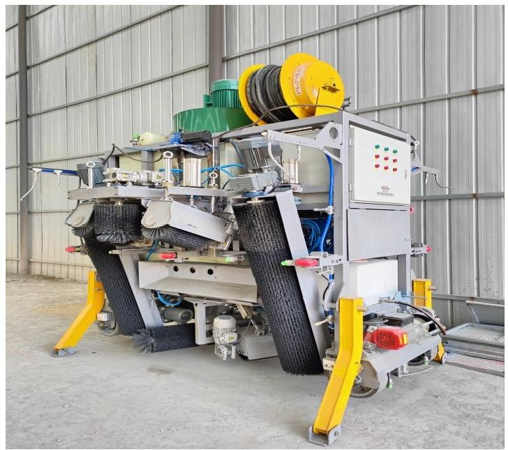 以往在箱梁預(yù)制時(shí),鋼模板采用人工手持電動(dòng)角磨機(jī)及脫模劑手動(dòng)涂刷作業(yè),存在施工效率低、清理不徹底、涂刷不均勻等直接影響預(yù)制梁體外觀和質(zhì)量的問題。此外,人工打磨周期長、無法與前后工序智能銜接,也制約了梁板流水線生產(chǎn)工業(yè)化建造的發(fā)展。