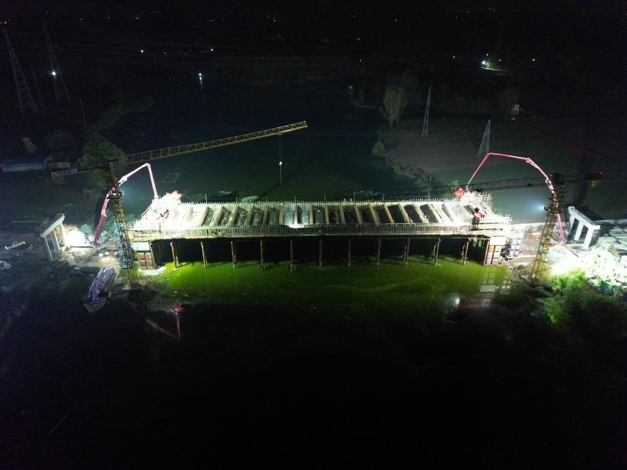 11月12日,隨著最后一方混凝土入模,經(jīng)過27個小時的連續(xù)奮戰(zhàn),沱澮河航道(李口至臨渙段)整治工程施工02標段項目主橋上部結構橫系梁及拱腳一次性整體性澆筑順利完成。