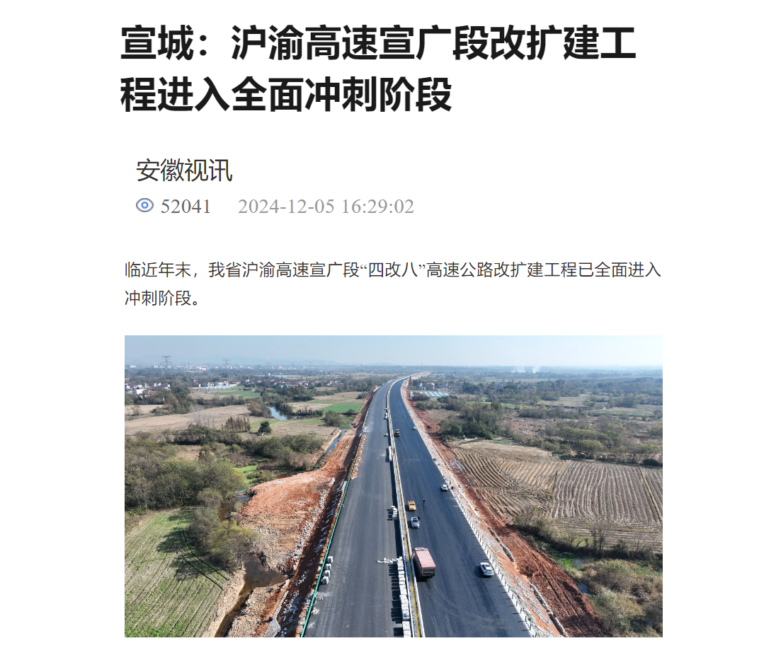 12月5日,安徽視訊對建工路港一分公司廣宣高速改擴(kuò)建GX-01標(biāo)水穩(wěn)瀝青大干熱潮展開了專題報(bào)道。