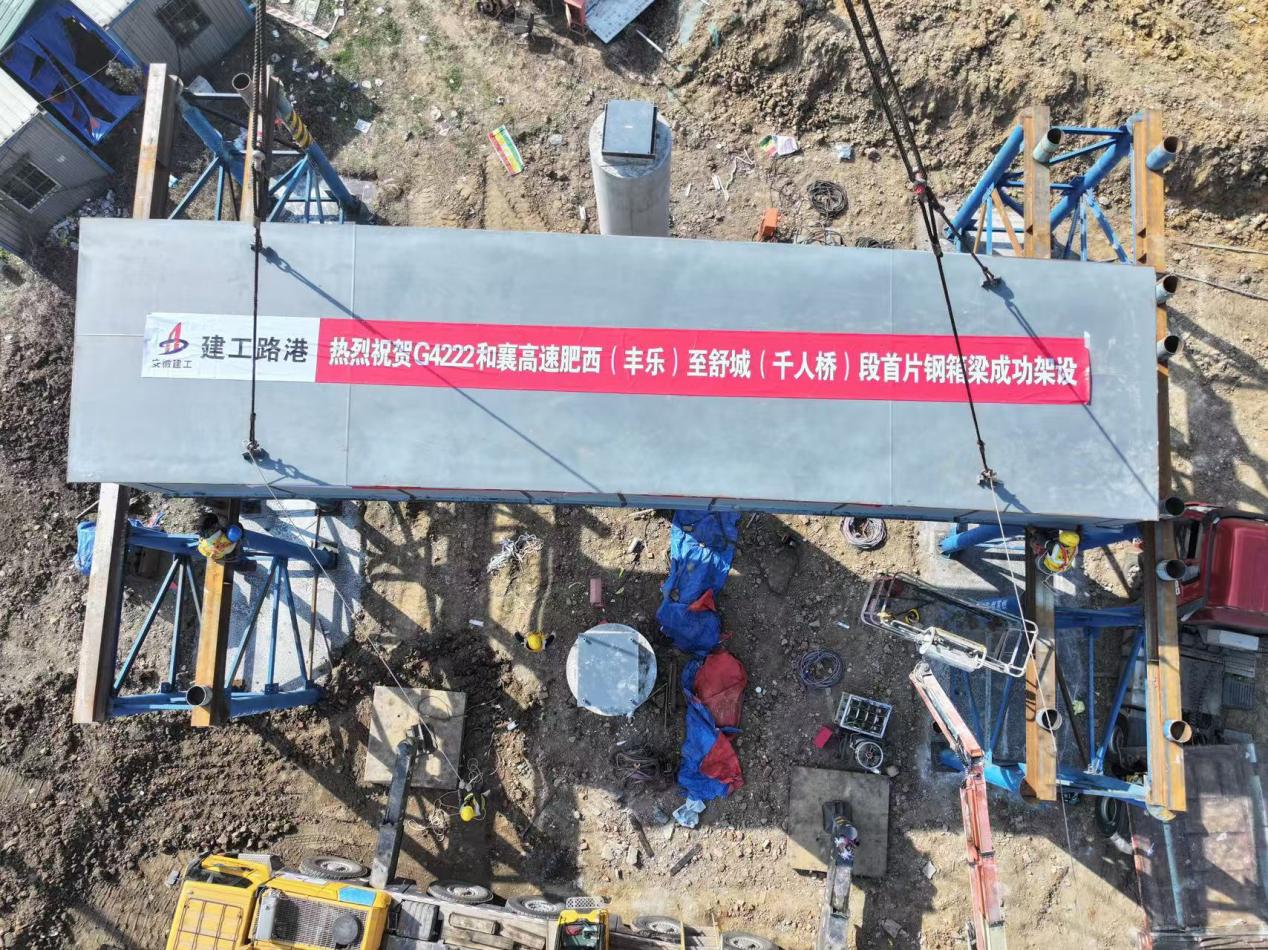 12月20日,G4222和襄高速項目首片鋼箱梁成功吊裝,為后續(xù)鋼箱梁吊裝施工奠定基礎(chǔ)。