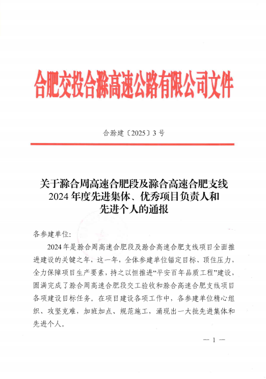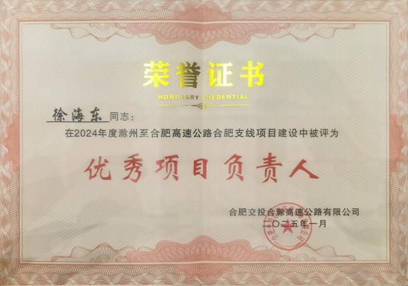 近日,合肥交投合滁高速公路舉辦2024年度總結(jié)大會暨表彰大會。滁合支線項目榮獲2024年度“先進集體”稱號,徐海東同志榮獲“優(yōu)秀項目負責人”稱號,張興強、王盛楠、耿貝貝同志榮獲先進個人稱號。
