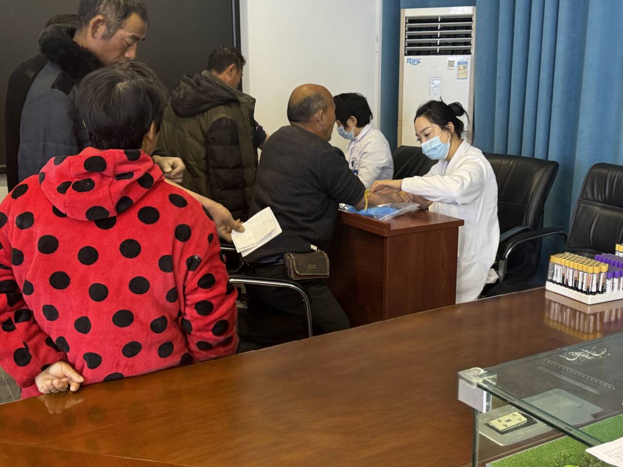 體檢現(xiàn)場,工友們在項目管理員的引導(dǎo)下,依次排隊登記、候檢。醫(yī)護(hù)人員在為工友們進(jìn)行健康體檢的同時,認(rèn)真詳細(xì)地解答工友關(guān)心的職業(yè)健康問題,為工友們普及健康常識。